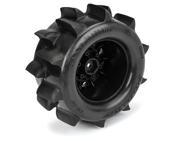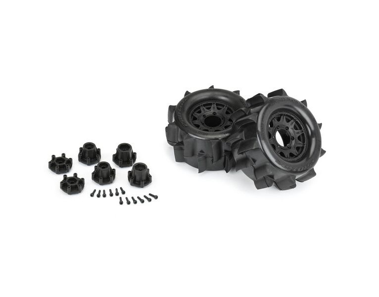 10249-10 Pro-Line Sand Paw HP BELTED 2.8" Sand Truck Ti res Mounted on Raid Black 6x30 Remova ble Hex (12mm & 14mm) Wheels (2)