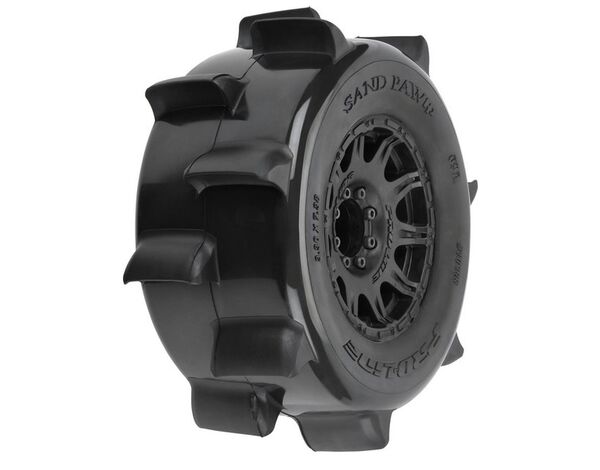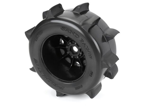 PRO1026810 ProLine 1/8 Sand Paw HP BELTED F/R 3.8" MT Tires Mounted 17mm Black Raid (2)