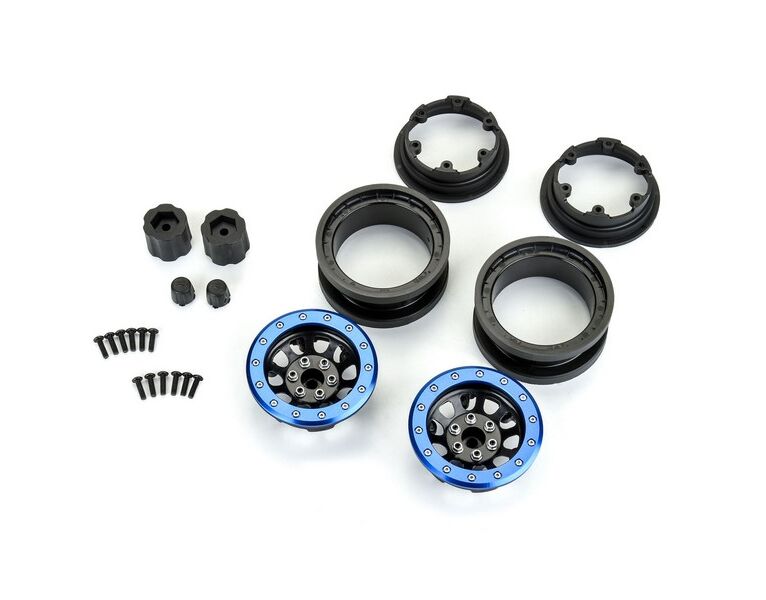 1/6 Steelies Stamped Steel 2.9" Dual Offset SCX6 Wheels Blue/Black Eigenschaften