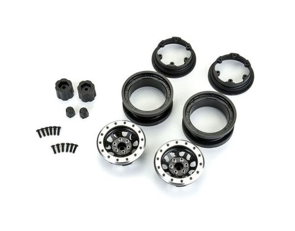 1/6 Steelies Stamped Steel 2.9" Dual Offset SCX6 Wheels Grey/Black Eigenschaften