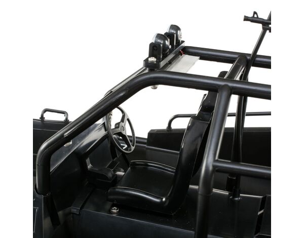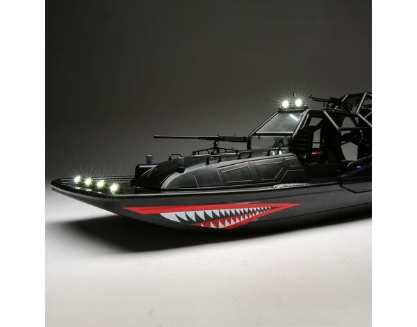 Fahre das Pro Boat® Aerotrooper ™ 25-Zoll Brushless Air Boat praktisch überall. Sogar an Land! Ausgestattet mit einem 2080kv 480 Brushless Outrunner Motor mit 3-Blatt-Druckpropeller über dem Rumpf, lassen sich große Gewässer, Sümpfe, kleine Rasenflächen und sogar Schnee und Eis erkunden. Das Militär-/Special-Forces Design mit abnehmbaren Gewehren, geformten Handläufen und einem Käfig sorgt für einen realistischen Auftritt. Außerdem passt das Scale-Cockpit mit Sitz und Lenkung zu den meisten Actionfiguren. Der zweiteilige Glasfaserverstärkte Nylon-Rumpf sorgt für eine lange Lebensdauer und schützt zudem die Elektronik. Dank der eingebauten LED-Beleuchtung macht die Aerotrooper auch bei Nacht eine äußerst gute Figur. Also: Auf zu neuen Ufern!
