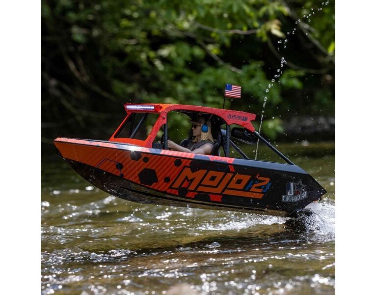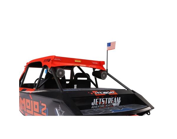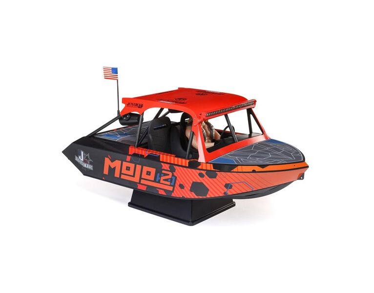 Wähle aus zwei offiziell lizenzierten Lackierungen dein Jetstream. Eines stellt das fantastische Death Boat von Blake Wilkey dar. Das andere hat die individuelle, eindrucksvolle Beklebung der MoJo H2O. Schaue dir alle realistischen Details beider Farbstellungen an – Überrollkäfig, komplettes Cockpit, Lenkrad, angedeutete Lautsprecher und mehr. Du kannst die LED-Lightbars vorne und hinten einfach ein- und ausschalten und die Pilotenfigur (ebenfalls inspiriert von Blake Wilkey von Mini Boat Mafia) in lässigen oder fahrenden Posen positionieren. Alles in allem bietet dein Jetstream damit den krassesten Look den es jemals unter RC-Booten gab.