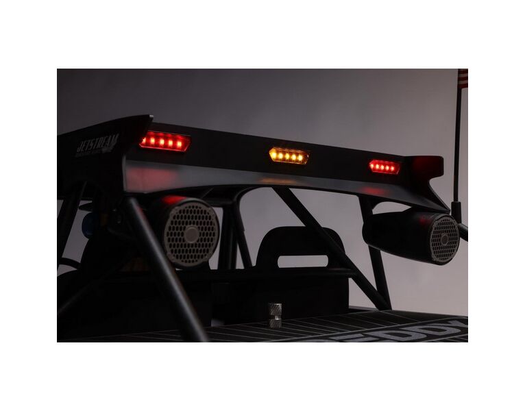 Wähle aus zwei tollen Lackierungen dein Jetstream. Eines stellt das berühmte Blake Wilkey Death Boat das. Das andere verfügt über eine individuelle, eindrucksvolle Beklebung in der MoJo H2O-Farbstellung. Das Jetstream verfügt außerdem über ein komplettes Cockpit, ein Lenkrad, Deckmaterial, simulierte Lautsprecher, einen hochfesten Überrollkäfig und einen Dachträger mit einer hellen, nach vorne gerichteten Lightbar und nach hinten gerichteten Racing-Lights.