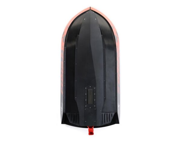 Der leistungsstarke Jetantrieb mit verstellbarer Nozzle-Trimmung wird durch eine durchgehende Heckfahrplatte mit austauschbaren und verstellbaren Trimmklappen geschützt. Die Verstärkung sowohl des Hecks als auch der beiden Siderails aus hochfestem und schlagfestem glasfaserverstärktem Nylon sorgt für den ultimativen Schutz unter dem Rumpf. Zwei vorbildgetreue Turnbuckles aus Aluminium machen die Einstellung der Trim Tabs zum Kinderspiel, genau wie beim Original. Edelstahlstifte am Einlass verhindern Schäden, indem sie verhindern, dass Schmutz und Steine in den Impeller gelangen.