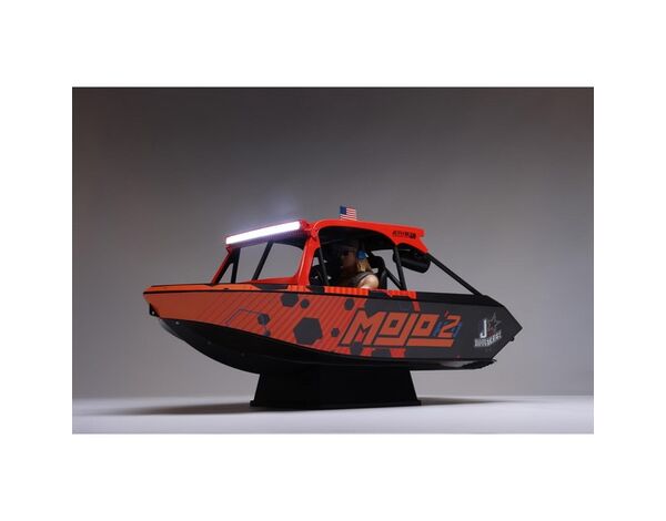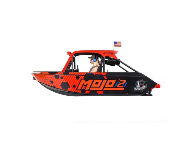 Wähle aus zwei offiziell lizenzierten Lackierungen dein Jetstream. Eines stellt das fantastische Death Boat von Blake Wilkey dar. Das andere hat die individuelle, eindrucksvolle Beklebung der MoJo H2O. Schaue dir alle realistischen Details beider Farbstellungen an – Überrollkäfig, komplettes Cockpit, Lenkrad, angedeutete Lautsprecher und mehr. Du kannst die LED-Lightbars vorne und hinten einfach ein- und ausschalten und die Pilotenfigur (ebenfalls inspiriert von Blake Wilkey von Mini Boat Mafia) in lässigen oder fahrenden Posen positionieren. Alles in allem bietet dein Jetstream damit den krassesten Look den es jemals unter RC-Booten gab.