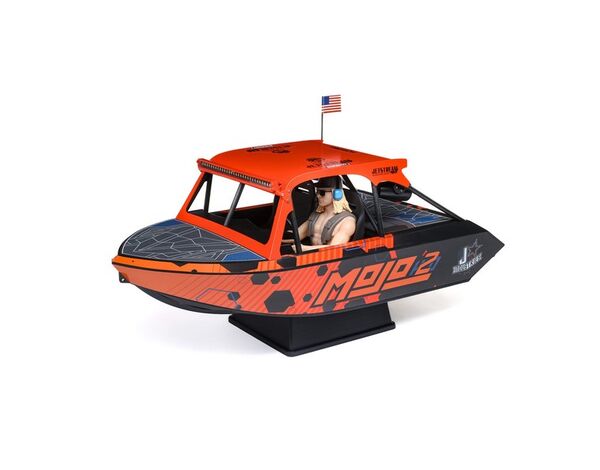 Wähle aus zwei offiziell lizenzierten Lackierungen dein Jetstream. Eines stellt das fantastische Death Boat von Blake Wilkey dar. Das andere hat die individuelle, eindrucksvolle Beklebung der MoJo H2O. Schaue dir alle realistischen Details beider Farbstellungen an – Überrollkäfig, komplettes Cockpit, Lenkrad, angedeutete Lautsprecher und mehr. Du kannst die LED-Lightbars vorne und hinten einfach ein- und ausschalten und die Pilotenfigur (ebenfalls inspiriert von Blake Wilkey von Mini Boat Mafia) in lässigen oder fahrenden Posen positionieren. Alles in allem bietet dein Jetstream damit den krassesten Look den es jemals unter RC-Booten gab.