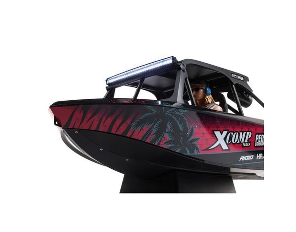 Wähle aus zwei offiziell lizenzierten Lackierungen dein Jetstream. Eines stellt das fantastische Death Boat von Blake Wilkey dar. Das andere hat die individuelle, eindrucksvolle Beklebung der MoJo H2O. Schaue dir alle realistischen Details beider Farbstellungen an – Überrollkäfig, komplettes Cockpit, Lenkrad, angedeutete Lautsprecher und mehr. Du kannst die LED-Lightbars vorne und hinten einfach ein- und ausschalten und die Pilotenfigur (ebenfalls inspiriert von Blake Wilkey von Mini Boat Mafia) in lässigen oder fahrenden Posen positionieren. Alles in allem bietet dein Jetstream damit den krassesten Look den es jemals unter RC-Booten gab.