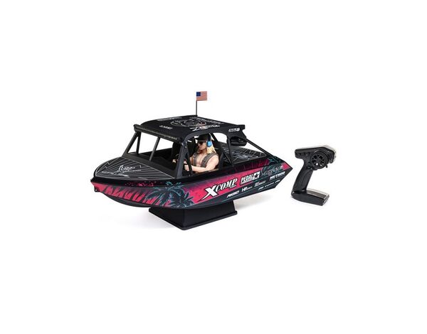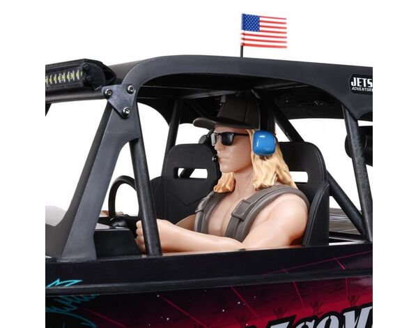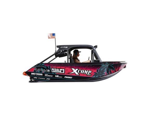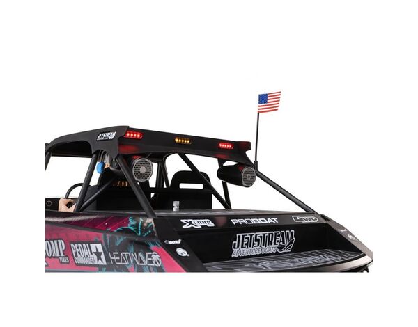 Wähle aus zwei tollen Lackierungen dein Jetstream. Eines stellt das berühmte Blake Wilkey Death Boat das. Das andere verfügt über eine individuelle, eindrucksvolle Beklebung in der MoJo H2O-Farbstellung. Das Jetstream verfügt außerdem über ein komplettes Cockpit, ein Lenkrad, Deckmaterial, simulierte Lautsprecher, einen hochfesten Überrollkäfig und einen Dachträger mit einer hellen, nach vorne gerichteten Lightbar und nach hinten gerichteten Racing-Lights.