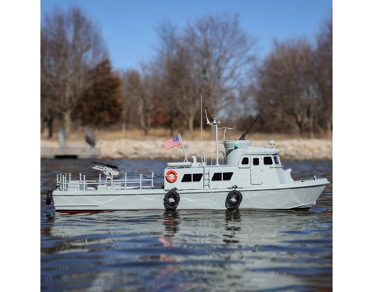 Mit dem PCF Mark I im Maßstab 1:25 ehrt Pro Boat die Helden, die während des Vietnamkrieges mit Patrol Craft Fast (PCF)-Schiffen patrouillierten. Nicht nur Veteranen, ihre Familien und Geschichtsinteressierte werden von der Genauigkeit der Details dieses Modells begeistert sein. Zudem liefert die Pro Boat-Technik eine herausragende Leistung auf dem Wasser, die auch alle RC-Boot-Enthusiasten in ihren Bann ziehen wird!