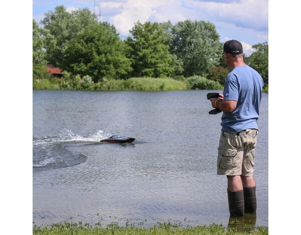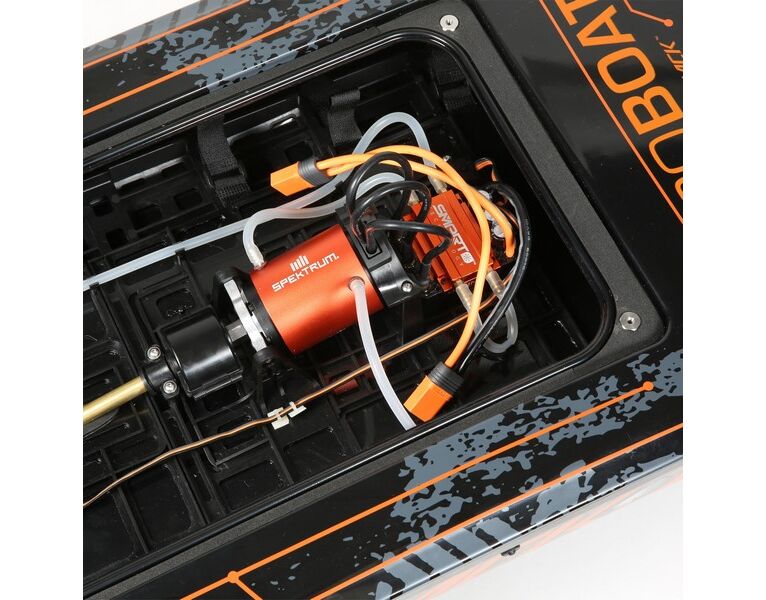 Der Pro Boat® Blackjack ™ 42 Brushless 8S Katamaran ist eine Rückkehr in die Zeit der großen Rennboote, die sich mit Style und Speed allen Kontrahenten stellen. Der wassergekühlte Spektrum Smart 8S 160A HV ESC versorgt unermüdlich den wassergekühlten 4-poligen Spektrum ™ Marine 4685 Motor, der bis zu 5,3 PS und mehr als 88 KMH leisten kann! Es gibt kein anderes Boot in dieser Größe mit so viel Leistung zu einem so attraktiven Preis. Natürlich wird alles vom Spektrum Smart ™ -System gesteuert, was dieses Speed-Monster unglaublich intelligent macht. Ein Spektrum DX3 ™ -Sender und ein wasserdichter 6-Kanal-Telemetrieempfänger SR6110AT verbinden das gesamte System, um einen störungsfreien Betrieb mit integrierter Telemetrie zu gewährleisten. Das Blackjack Boot verfügt außerdem über einen schlagfesten Polycarbonat-Rumpf, ein Polycarbonat-Verdeck mit Aluminium-Daumenschrauben, ein sauber geformtes Interieur sowie ein Aluminium-Ruder und eine Propellerstrebe. Lege Deine Karten auf den Tisch und erobere den See mit dem Pro Boat Blackjack 42 Katamaran.