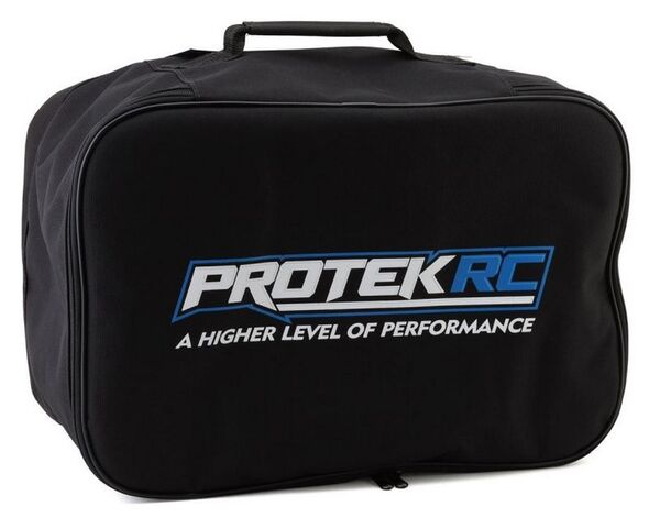 Die ProTek RC 1/8 Buggy Reifentasche ist ein praktischer Weg, um Ihre Reifen zu transportieren und aufzubewahren, sowie alles andere, was in eine der sechs mitgelieferten, luftdichten 8" hohen, 4,75" Durchmesser Schraubdeckel Aufbewahrungsröhren passt. Die Tasche selbst ist aus strapazierfähigem Nylonmaterial gefertigt und misst 17" in der Breite, 12" in der Tiefe und 9" in der Höhe. Auf dem Deckel der Tasche ist ein großes weißes ProTek RC-Logo abgebildet. Auf der Innenseite der Tasche befindet sich eine 16 x 11 Zoll große Netztasche mit Reißverschluss, in der Setup-Sheets, Werkzeuge oder anderes kleines Zubehör verstaut werden können, das auf der Rennstrecke nützlich sein kann. Wenn Sie Ihre Ausrüstung ordentlich aufbewahren wollen, ist diese Tasche ein unverzichtbares Zubehör.