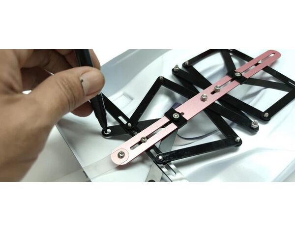 Speziell bei 1/12 On-Road ist der vordere Pfosten schräg nach vorne gerichtet und sogar das Auffinden der Löcher auf einer durchsichtigen Karosserie ist aufgrund von Parallaxenfehlern schwierig. Mit diesem Tool werden alle Fehler eliminiert.