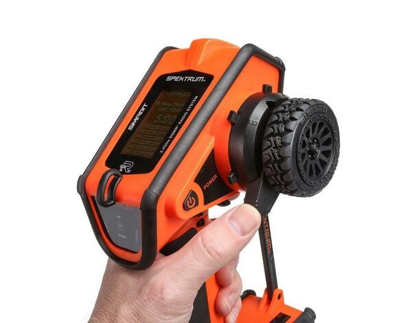 Das aggressive Offroad Reifenprofil am Lenkrad geben gemeinsam mit der Spektrum Präzision eine bessere Feinfühligkeit beim Steuern, unabhängig davon, ob du gerade crawlst, basht oder mit einem Boot in wildesten Bedingungen fährst. Der integrierte Daumenhebel ermöglicht eine sichere und präzisere Steuerung auch mit nur einer Hand.