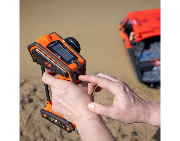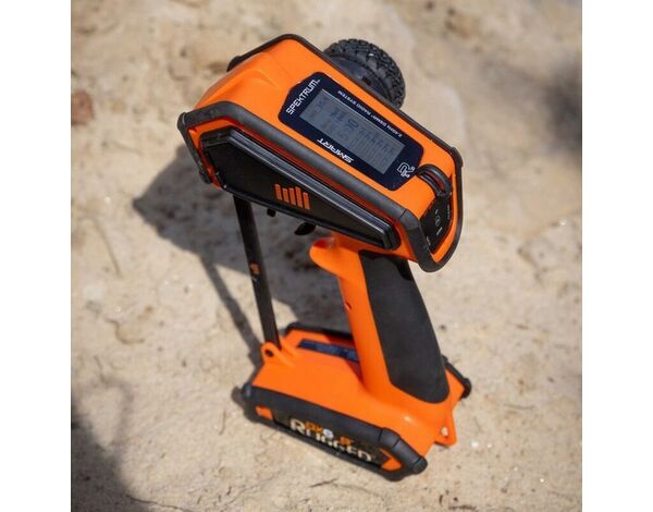 Ausgehend von einem Gehäuse, das auf dem hervorragenden ergonomischen Spektrum-Design basiert, ließen wir uns von der Stoßfestigkeit akkubetriebener Elektrowerkzeuge inspirieren. Wir haben diese Technik auf die spezifischen Bedürfnisse des RC-Fahrers übertragen. Das Ergebnis ist ein stoßdämpfendes, gummiertes Bumper-Design, das das Sendergehäuse umgibt und so einen Schutz bietet, der noch nie zuvor bei einer Surface-Fernsteuerung geboten wurde.
