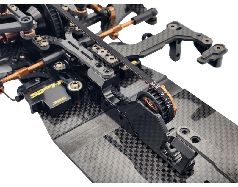 Weight positioning is the most important thing on a FWD Chassis. The SP1-F includes 2x 32G Brass Black Coated Weights which are positioned in-front of the Servo and Motor. It also includes 4x 10g round weights which can be screwed into the bumper. The bumper accepts a total of 8x 10g weights. There is also an optional front centre weight which locates behind the diff of 29g for further tuning.