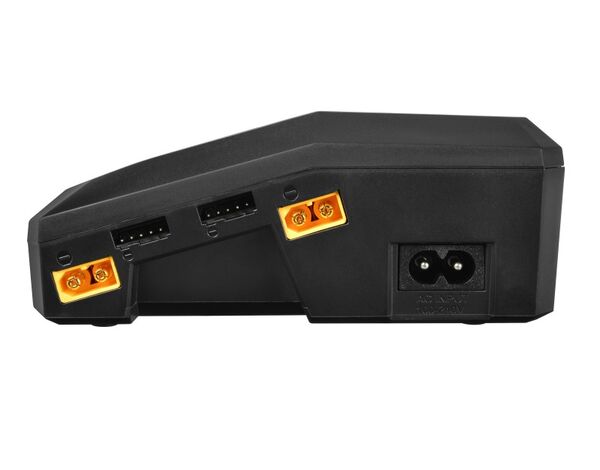 Der QUAD POWER 100 verfügt über 4 Ladeausgänge, die mit jeweils bis zu 100 Watt (DC) betrieben werden können. Ein Leistungspaket von insgesamt 400 Watt im DC- und 100W im AC-Modus. Der QUAD POWER 100 kann bis zu 4x 8 NiCd/NiMH-Zellen oder 4x 4S Lithium Akkupacks gleichzeitig laden. Das Ladegerät verfügt über 4 individuelle Zellspannungsbalancer an jedem Ausgang mit 500mA Aus- gleichsstrom. Der QUAD POWER 100 verfügt über interne Zellenbalancer, kontrastreiche LCD-Anzeigen und wichtige Warn- und Sicherheitsfunktionen.