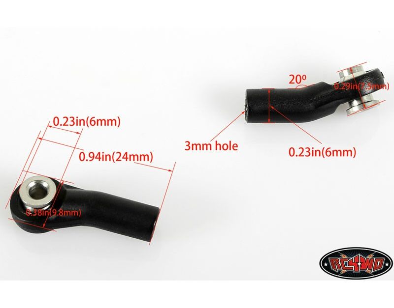 Z-S0833 RC4WD M3 Plastic Bent Rod Ends w/ Axial Width Balls (20x)