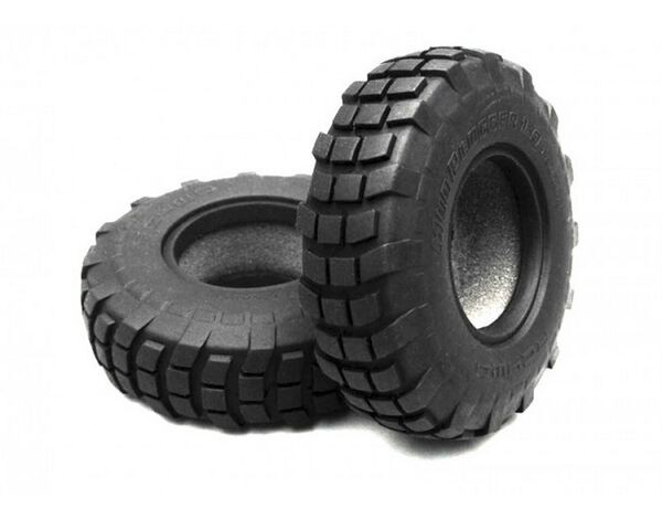 Extreme scale all terrain offroad tire, large diameter ideal for large scale builds. Aggressive lugs and narrow, look good when they are small in relation to the vehicle, such as defenders and military vehicles etc.