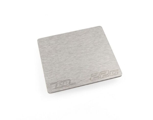 Das Revolution Design Tungsten ESC Gewicht bringt 22 g Zusatzgewicht direkt unter gängige 1/10-Fahrtenregler mit 35 × 34 mm Grundfläche - genau das Maß des beliebten Hobbywing XR10 Pro oder RUDDOG RXS. Dank der extrem hohen Tungsten-Dichte von rund 19,3 g/cm³ ist das Gewicht mehr als doppelt so schwer wie Messing (≈ 8,7 g/cm³) und deutlich schwerer als Stahl (≈ 7,85 g/cm³). So genügt eine Bauhöhe von nur 1,0 mm, während Messing-Platten oft 2 mm stark sind und selbst viele Tungsten-Platten noch 1,5 mm messen. Dadurch liegt der Regler tiefer, der Schwerpunkt sinkt und das Chassis wird perfekt zum Akku ausbalanciert – für ein gleichmäßiges, berechenbares Fahrverhalten. Sauber gefaste Kanten, eine mattgraue Oberfläche und ein Laser-Logo unterstreichen die hochwertige Verarbeitung.