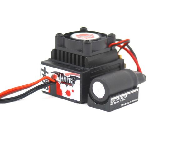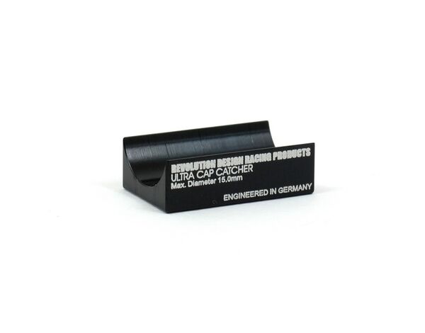 RDRP0009 Revolution Design Ultra Cap Catcher The Ultra Cap Catcher is best used with larger diameter capacitors but also works just perfect with smaller caps thanks to the crescent-shaped design. When the cap is installed with heat-conductive tape the black anodised mount also acts as a heat sink. The RDRP Ultra Cap Catcher is a simple but genius mount that holds separated speed controller capacitors such as found on Vampire Racing, Novak or LRP speedos. It is machined from a piece of high-quality 7075-T6 aluminium and holds capacitors with a diameter of up to 15mm. Instead of having the capacitor unsightly attached using cable ties or large amounts of double-sided tape, the capacitors is fixed using a single layer of tape and the Ultra Cap Catcher mounted near the controller or wherever it may suit your needs. The large surface for both the capacitor and the chassis mounting area makes for secure fastening without having to worry about loosened caps anymore. Small dimensions hel