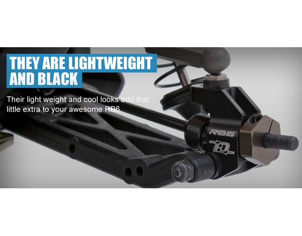 The Revolution Design Racing Products aluminium rear hubs are precision CNC-machined from aircraft-grade 7075-T6 aluminium and made to replace the standard plastic hubs with a more durable and better looking variant. The hubs mimic the stock geometry, offer two vertical mounting positions for the camber link ball stud and they are of a 0° toe design. As usual they come in RDRP's signature stealth black anodising and sport white markings for a cool factory look.