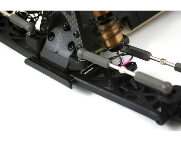 The RDRP RB6 Front Suspension Block Aluminium is design to replace the kit's plastic bulkhead with a more durable and more precise part. Machined from 7075-T6 aluminium and coming black anodised for a stealthy look the part allows to choose between 25 degree and 30 degree A-arm kick-up in order to alter the car's front end grip. On top of that the alloy material greatly improve the robustness of the front end while the precise manufacturing adds to the overall appearance.
