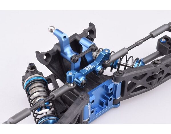 The RDRP B5RM/MM Bellcrank Aluminium Set replaces the kit's plastic steering bellcranks with stronger parts for added rigidity and better looks. The CNC-machined 7075-T6 aluminium construction considerably strengthens the steering assembly for less slop, a more precise steering reaction and less flex, resulting in a rock solid steering feeling and more durability in the event of a crash. The RDRP B5RM/MM bellcrank aluminium set is made for the use with B5 and T5 series kits and it comes blue anodised and laser-etched to match the remainder of our Team Associated option parts.