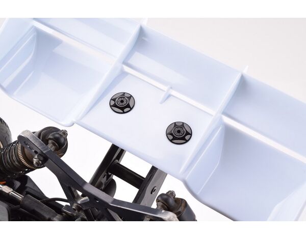 The Revolution Design Racing Products Buggy Wing Buttons are designed to improve wing fitment and security on both 1/8th and 1/10th scale buggies. Machined from aircraft-grade aluminium the buttons help to securely fasten both polycarbonate and moulded wings, prolonging the life of both the wing mount and wing. Machined holes for countersunk screws make for easy and convenient wing mounting, with the buttons being usable with most wing mounts that use screws over the standard body clip solution. The buttons come in the five different colours of "Tamiya" light blue, "Yokomo" dark blue, black, orange and red.