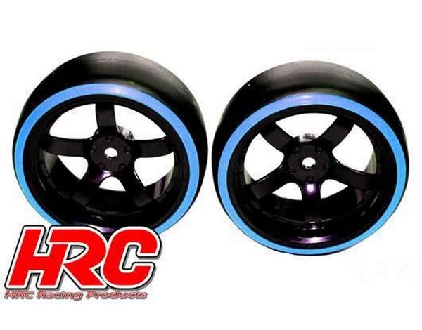 HRC61062BL Reifen - 1/10 Drift - montiert - 5-Spoke Felgen 6mm Offset - Dual Color - Slick - Schwarz/Blau (2 Stk.)