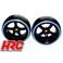 Reifen - 1/10 Drift - montiert - 5-Spoke Felgen 6mm Offset - Dual Color - Slick - Schwarz/Blau (2 Stk.)