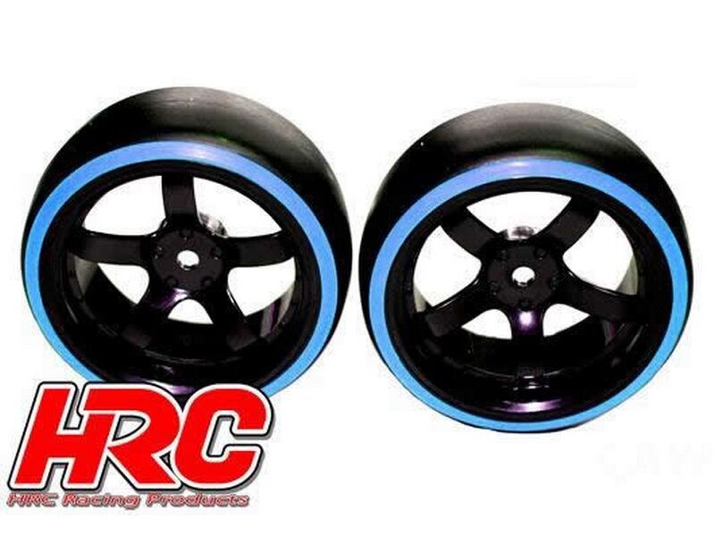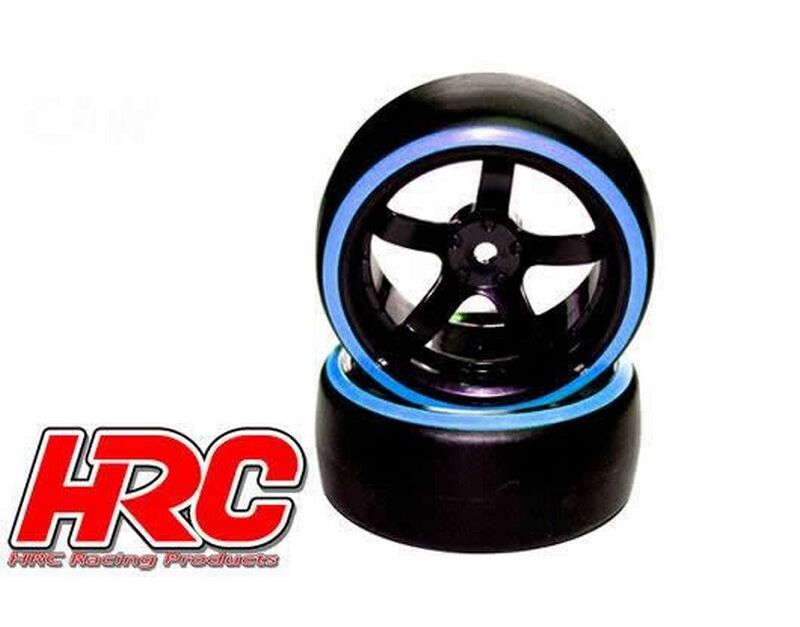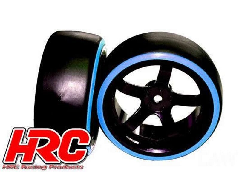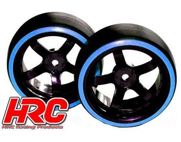 HRC61062BL Reifen - 1/10 Drift - montiert - 5-Spoke Felgen 6mm Offset - Dual Color - Slick - Schwarz/Blau (2 Stk.)
