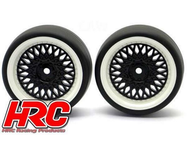 HRC61071BW Reifen - 1/10 Drift - montiert - CLS Schwarz/Weiss Felgen 3mm Offset - Slick (2 Stk.)