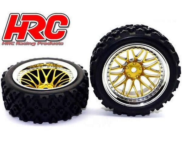 HRC61031/2 Reifen - 1/10 Rally - montiert - Gold/Chrome Felgen - 12mm Hex - HRC Rally (2 Stk.)