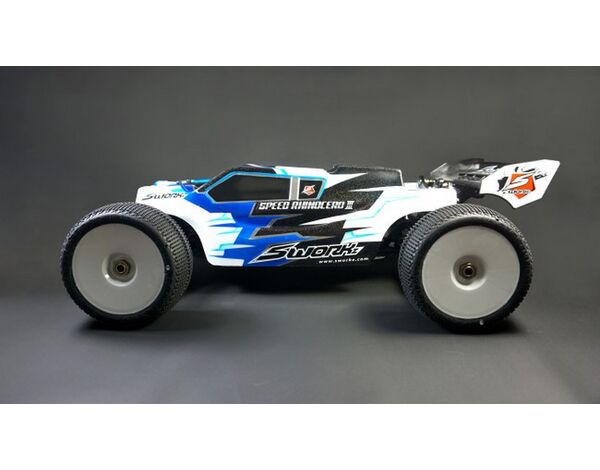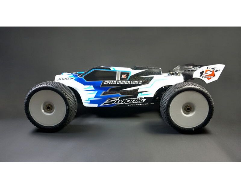 The Speed Rhinocero III Body Shell suits for the SWORKz 1/8 S35-T Truggy or ZEUS Option. It is very detailed and comes with window mask and stickers. With this body the S35-3T and S35-3TE are easy to drive and it gives faster lap times and a nice shape too !!
