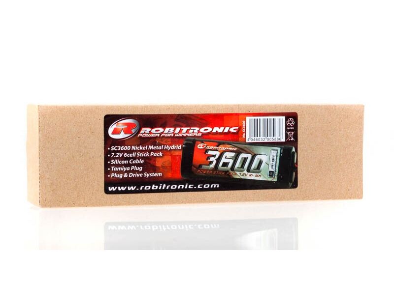 Der Robitronic SC3600 NiMH Stick Pack Akku ist ein echtes All-Round Tallent. Egal ob beim Einsatz in Fahrzeugen, Booten, Flugzeugen oder Starterboxen, er macht immer eine gute Figur. Dieser robust und fast unverwüstlich NiMH Racing Pack besitzt zudem ein unübertroffen Preis / Leistungsverhältnis. Die neuen Zellen besitzen eine bessere Spannungslage für noch mehr Power um jedem Anspruch gerecht zu werden. Er ist fix und fertig mit Tamiya Stecker konfektioniert und besitzt ein schickes Sticker-Design.