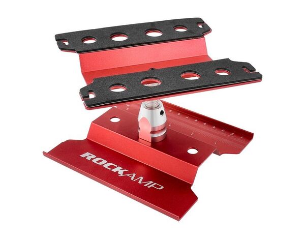 Auf Augenhöhe am eigenen Fahrzeug zu arbeiten ist mit diesem Montagestand für 1/10-Fahrzeuge kein Problem. Einfach schwenkbar und durch auf- und abschrauben kann die Höhe schnell angepasst werden.