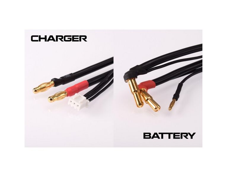 Ab sofort von Ruddo Racing erhältlich, ist das neue 2S "all-black" Ladekabel. Dieses ist 60cm lang und verfügt laderseitig über 4mm Stecker sowie einen XH Balancerstecker. Auf der Akku Seite des Ladekabels befindet sich ein abgestufter 4/5mm Stecker, dieser ermöglicht es 2S Akkus mit 4mm oder 5mm Buchsen zu laden. Am Balancerkabel befindet sich hier ein handelsüblicher 2mm Stecker. Um auch für die entsprechende Optik zu sorgen, sind alle Kabel in schwarz gehalten und nur durch einen kurzen Schrumpfschlauch entsprechend farbig gekennzeichnet.