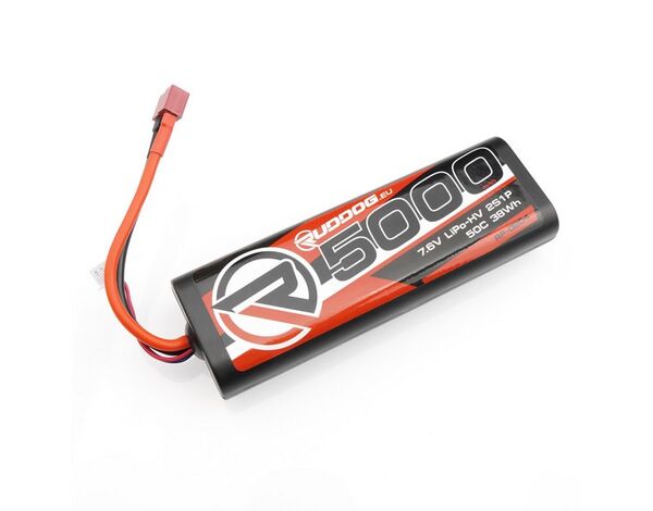 RUDDOG 5000mAh 50C 7.6V LiPo-HV Round Stick Pack Battery with T-Style Plug Die RUDDOG Hobby LiPo-HV Akkus bieten starke Leistung und hohe Zuverlässigkeit für Einsteiger, Basher und Crawler-Fans. Gefertigt aus robusten 50C-Zellen liefern sie auch bei leistungsstarken Motoren konstante Power. Das schlagzähe Hardcase-Gehäuse schützt den Akku zuverlässig vor Beschädigungen – ideal für Fahrten abseits befestigter Wege oder für den Einsatz auf der Rennstrecke. Dank ihrer 7.6V High-Voltage-Technologie bieten sie eine leicht erhöhte Spannung gegenüber herkömmlichen 2S-Akkus und damit einen Extraschub an Leistung. Alle drei Varianten – RP-0804-TA (Tamiya-kompatibler Stecker), RP-0804-TPL (T-Style-Stecker) und RP-0804-XT60 (XT60-Stecker) – besitzen die gleiche, abgerundete Stick-Pack-Form. Dadurch sind sie mit vielen gängigen 1:10 Tamiya Fahrzeugen kompatibel, darunter auch Tamiya-Modelle wie TA-02 und TA-03. So kann für jeden Einsatzzweck der passende Anschluss gewählt w