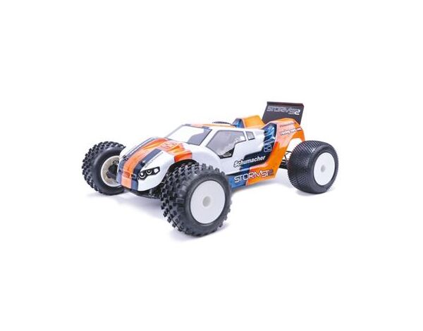 Schumacher re-entered the competitive stadium truck market with the STORM ST, and achieved multiple race victories, including the European EOS series and MK British GP. The new STORM ST2 takes stadium trucks to the next level with improved suspension geometry, durability and adjustability. The STORM ST2 features a lightweight, low centre of gravity design, for optimum performance on a wide range of track surfaces. Whether you race on high grip carpet, medium grip astro, or low grip dirt, the STORM ST2 is a winner.