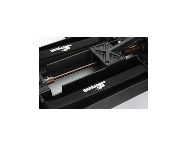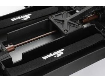 Durable shaped composite extra large side guards / battery trays that follow the line of the chassis, and mount with 5 screws each side. Front and sides high enough to keep the dirt out. The guards/trays create a lot of stability. The batteries are mounted in longitudinal fashion, keeping the weight very low in the car. The battery trays features easy to use Serpent marked felcron TM straps to secure the batteries in place. Fits 2S and 3S batteries.