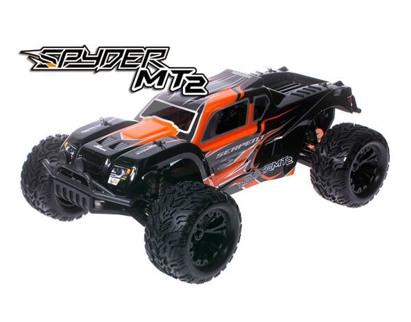 Spyder MT2 1/10 EP 2wd 1/10 scale Monster truck in 2wd version with big Monster truck tyres/wheels and MT body. Brushless motor and waterproof 45A speedo. Metal gear servo. Dragon 2.4 GHz transmitter and supersmall receiver.