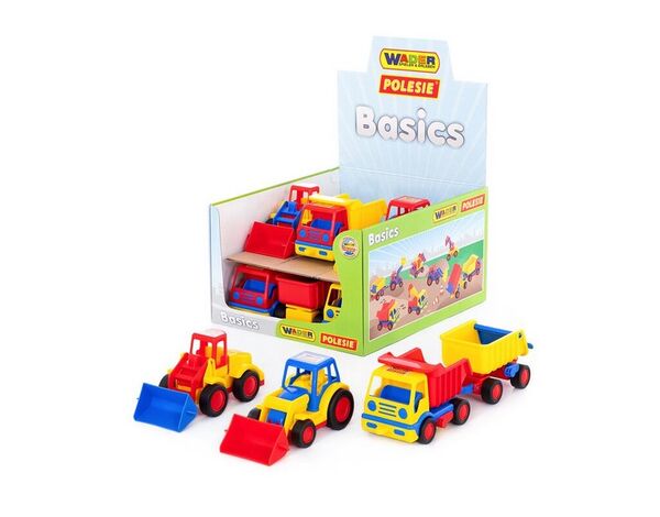 Bestehen aus Muldenkippern, Traktoren mit Schaufeln, Schaufelladern und Anhängern
