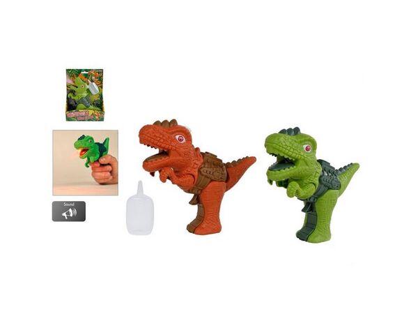 Wenn du den Blaster mit Wasser füllst und den Abzug betätigst, schreit der Dino und spuckt rot angeleuchteten Dampf