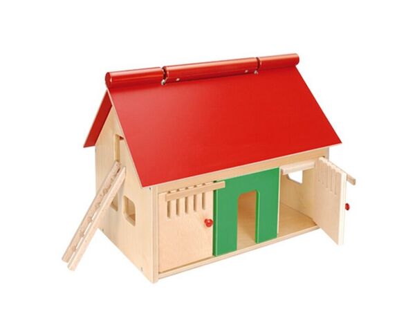 Große Spielscheune aus Buchenholz, hochwertig verarbeitet und aus Massivholz hergestellt.