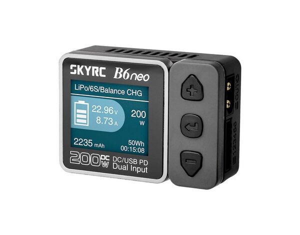 Der B6neo von SkyRC bringt mit dem eleganten zweifarbigen Design in Grautönen Spaß beim Laden. Egal ob auf der Rennstrecke oder im Hobbybereich, es hebt sich einfach mit dem ruhigen Farbschemata von der Masse ab und zeigt die einzigartige Persönlichkeit des Besitzers. Das B6neo mag kleiner als eine Kreditkarte sein und damit locker in eine Hand passen, es ist aber trotzdem äußerst leistungsstark und deswegen nicht zu unterschätzen. Mit einer Ladekapazität von bis zu 200W (DC) und bis zu 80W mit USB PD-Eingang setzt es vollkommen neue Maßstäbe für vergleichbare RC-Ladegeräte. Das elegante Kunststoffgehäuse mit seinen attraktiven Farben ist ein echter Hingucker!