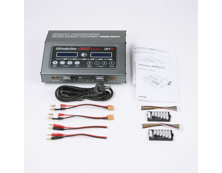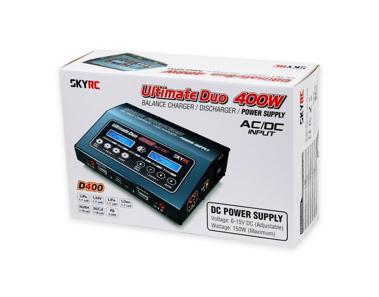 Beim SKYRC D400 handelt es sich um eine leistungsstarke, mikroprozessorgesteuerte Lade- / Entladestation mit Akkumanagement für den Einsatz mit allen gängigen Akku-Typen