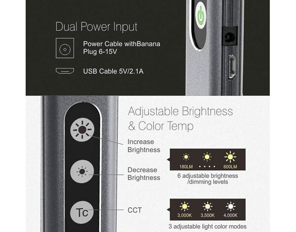 Die SKYRC Pit Light (Arbeitsplatzlampe) verfügt über ein komfortables und gut zu bedienendes Bedienelemente um die Lichttemperatur und Helligkeit einzustellen.