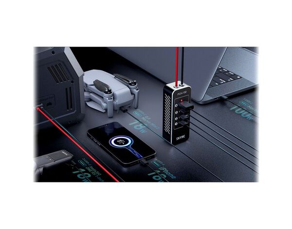 Der PCH-150 PD Ladeadapter erweitert die Möglichkeiten des T1000-Ladegerätes um eine praktische Funktionen. Denn mit 150W schierer Ladeleistung kann es über die 4 Anschlüsse unterschiedlichste Geräte gleichzeitig mit frischer Energie versorgen. Dazu zählen selbst Smartphones und größere Laptops.