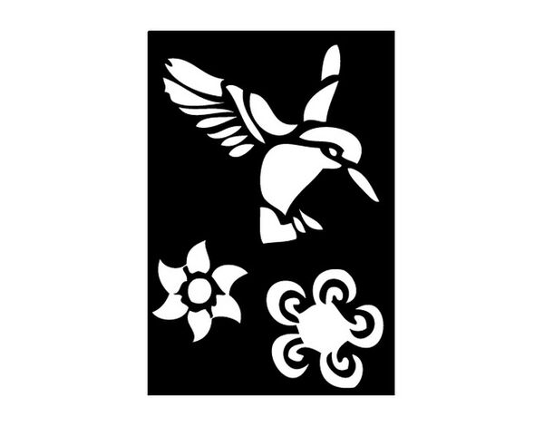 SP1009 Shesto Adhesive stencil HUMMINGBIRD + FLOWER