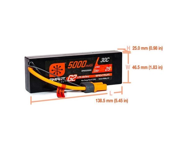 SPMX52S30H5 5000mAh 2S 7.4V 30C Smart LiPo G2 Hardcase IC5